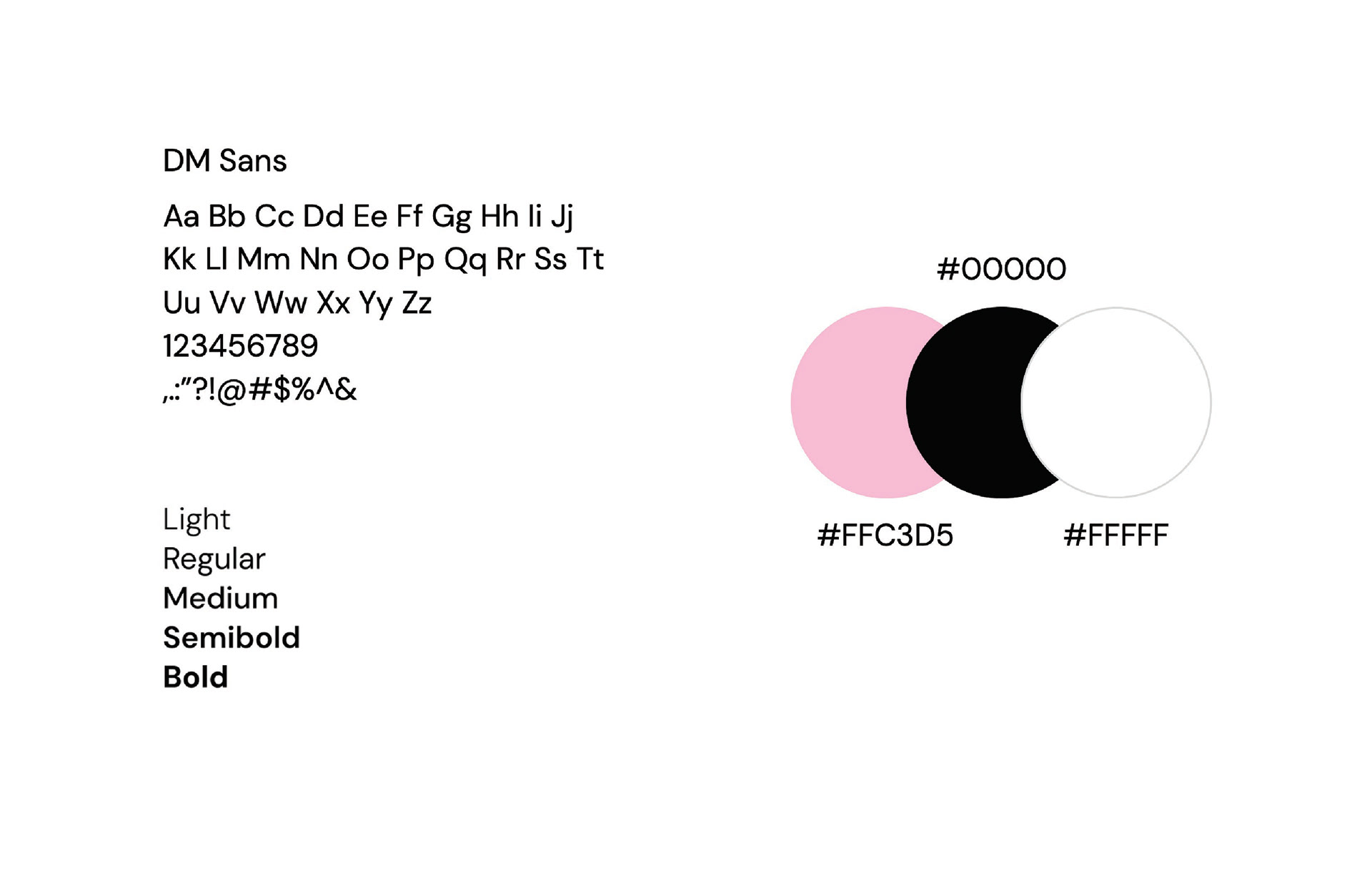 The improved website's typeface, DM Sans, was chosen because it is clean, simple, and great for use in smaller sizes. I used a range of weights throughout the pages to ensure good layout structure and hierarchy.